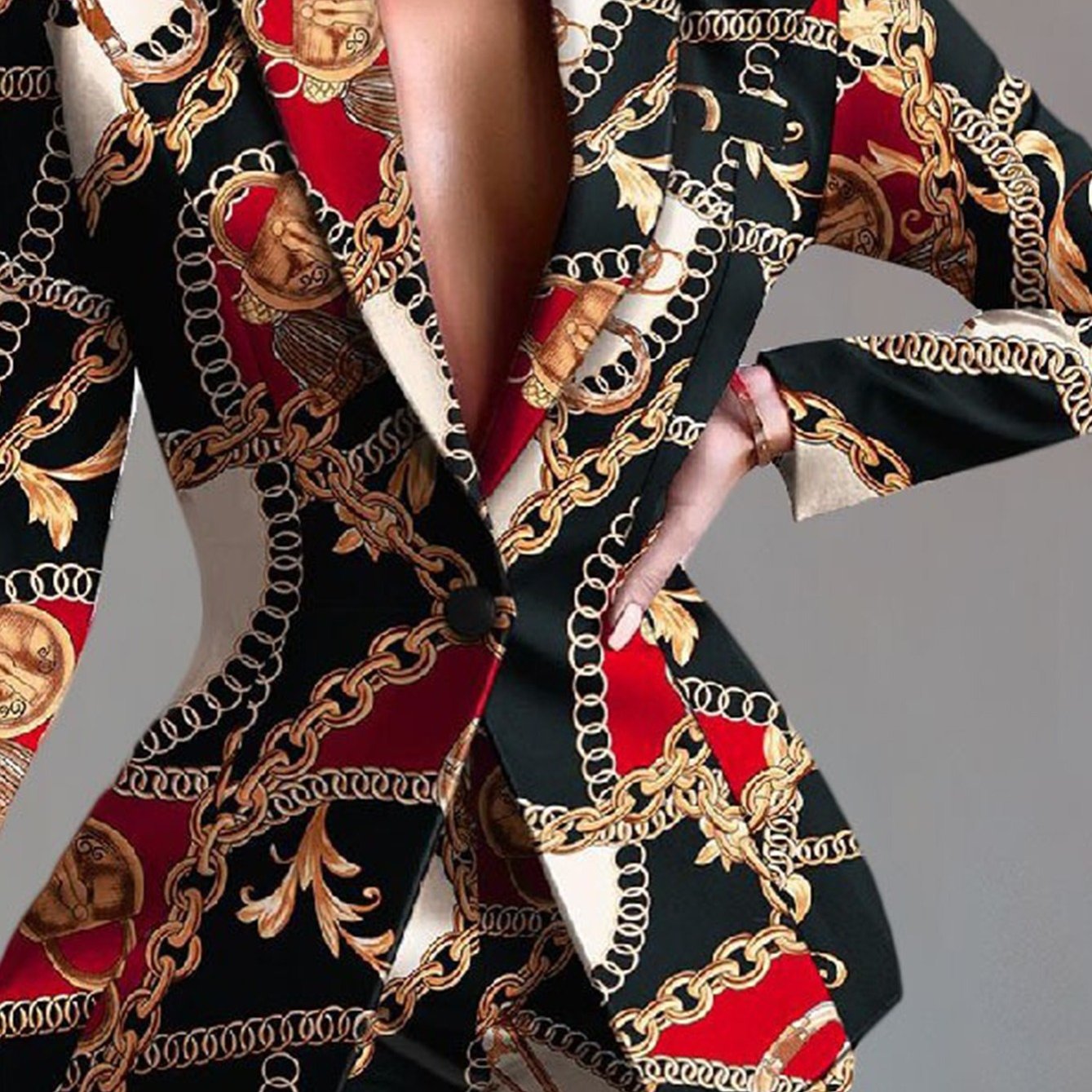 Command attention in the Amelia™ – Elegant Blazer Set, a bold and fashion-forward two-piece outfit designed for women who lead with style. This set pairs a tailored, makeup-fitted cropped blazer with sleek, curve-hugging high-waisted pants—a flawless fusion of business polish and modern edge.