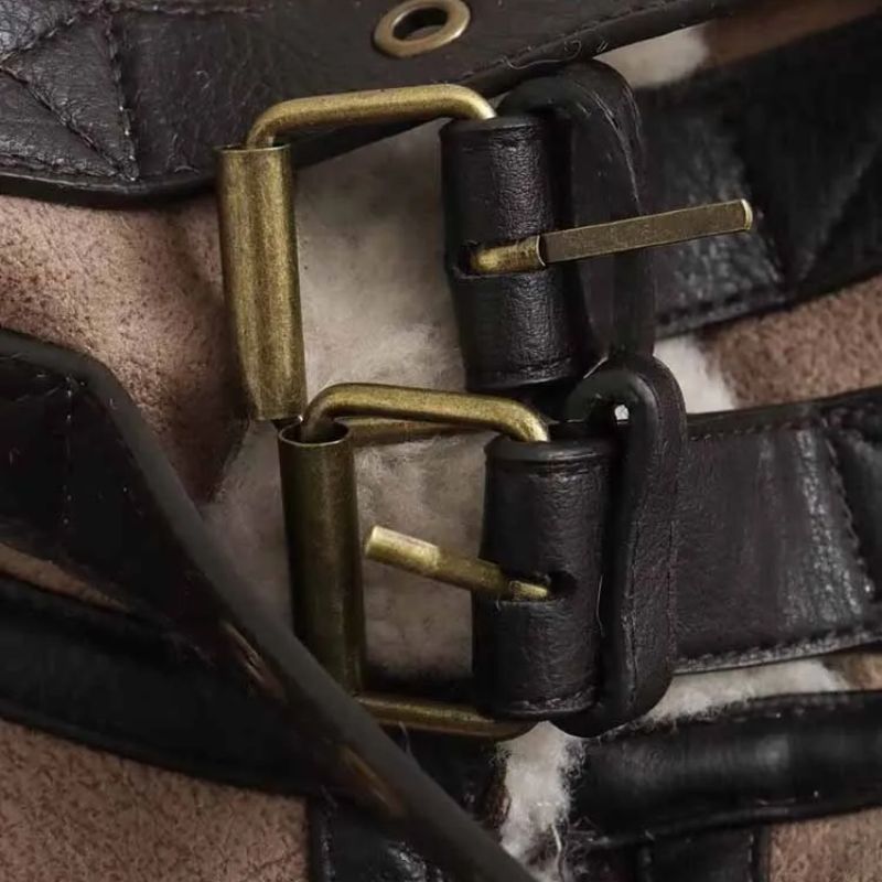 Stay effortlessly chic with this shearling-lined aviator jacket, a modern take on a timeless classic. Crafted from premium faux leather with a plush shearling collar and lining, it combines warmth and sophistication. The zip-front closure, adjustable belt at the hem, and multiple zippered pockets add both practicality and edgy style. Available in rich brown and neutral beige, this jacket pairs beautifully with skinny jeans and boots for a contemporary cold-weather outfit. Perfect for layering, it’s a statement piece that elevates any casual wardrobe.