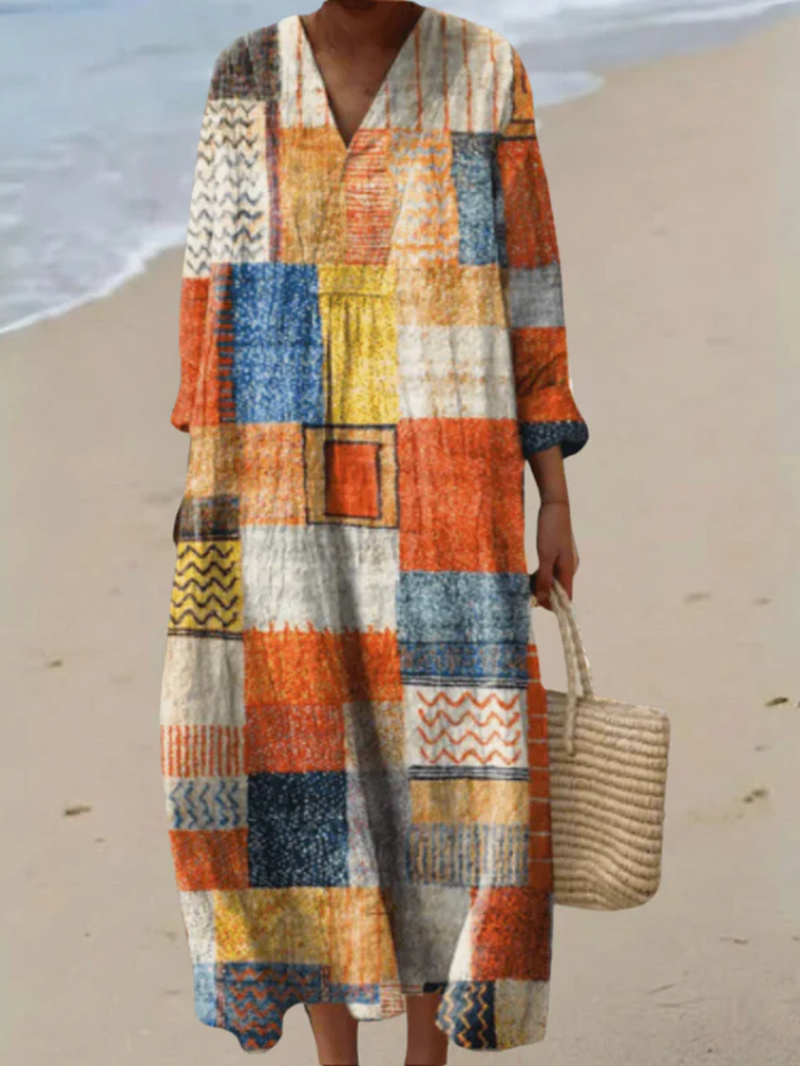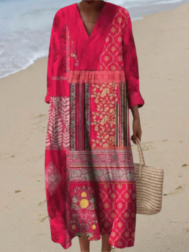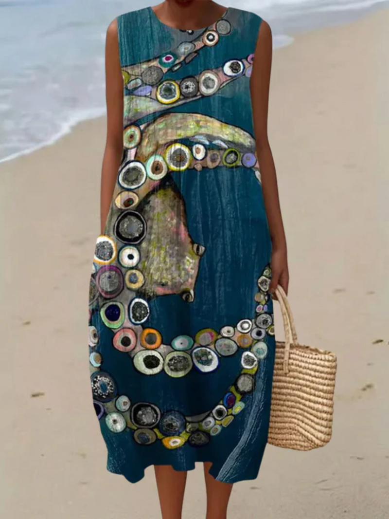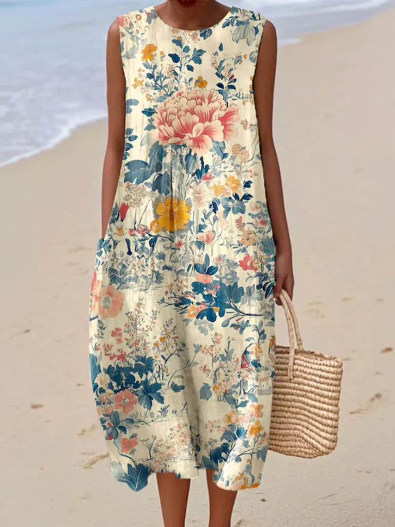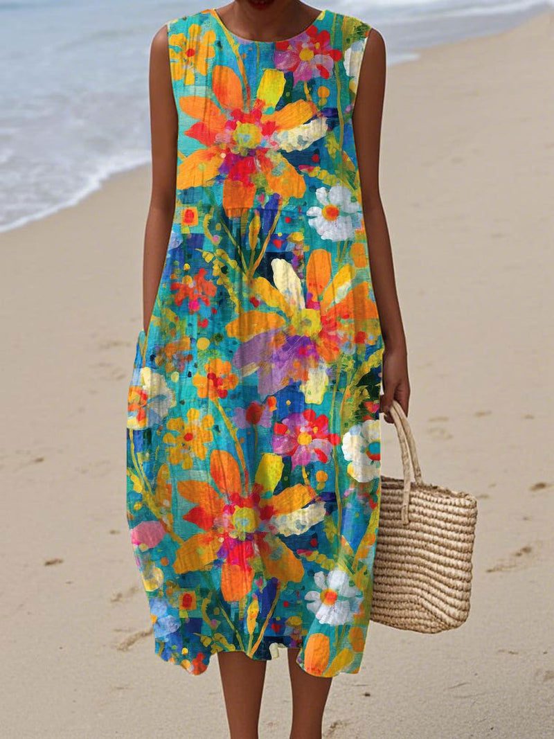 Women's Vintage Floral Art Print Flowy Casual Dress