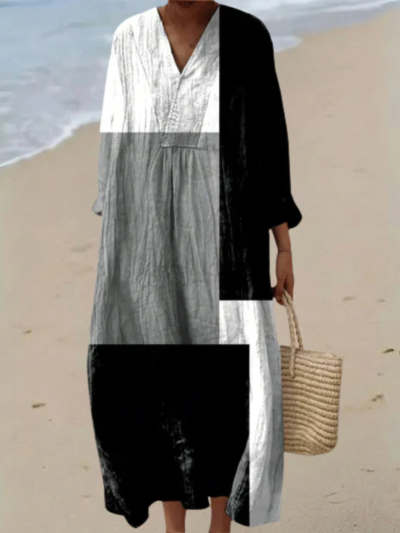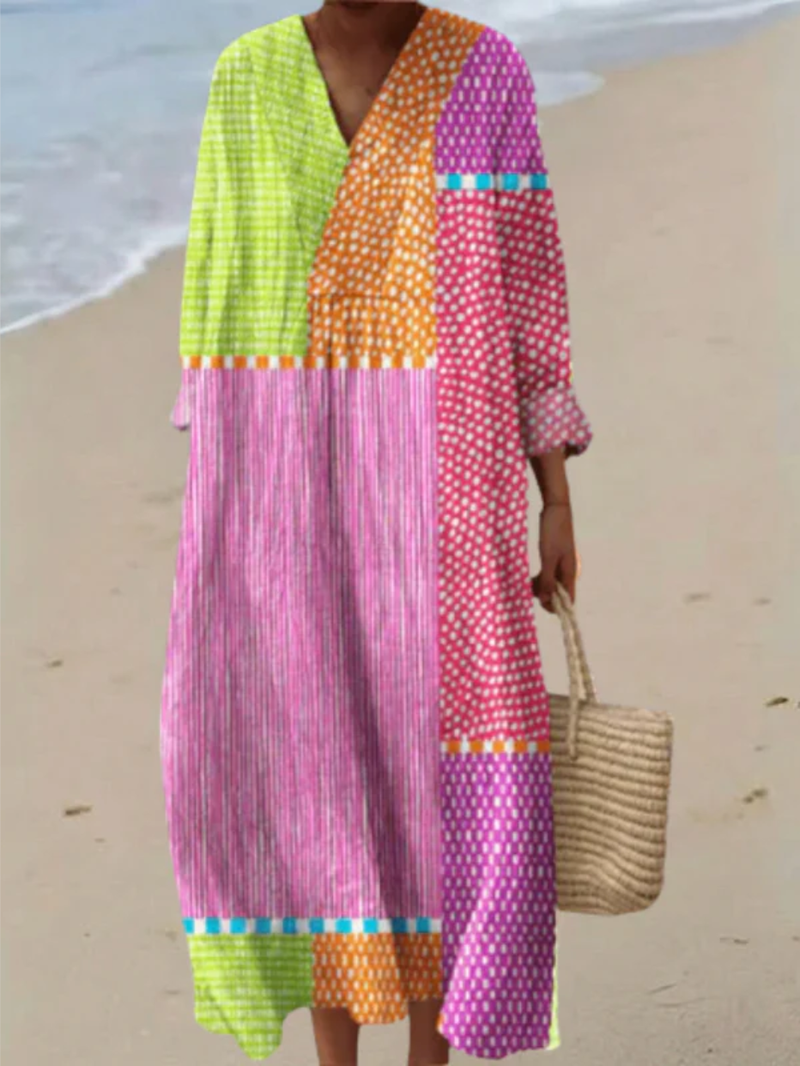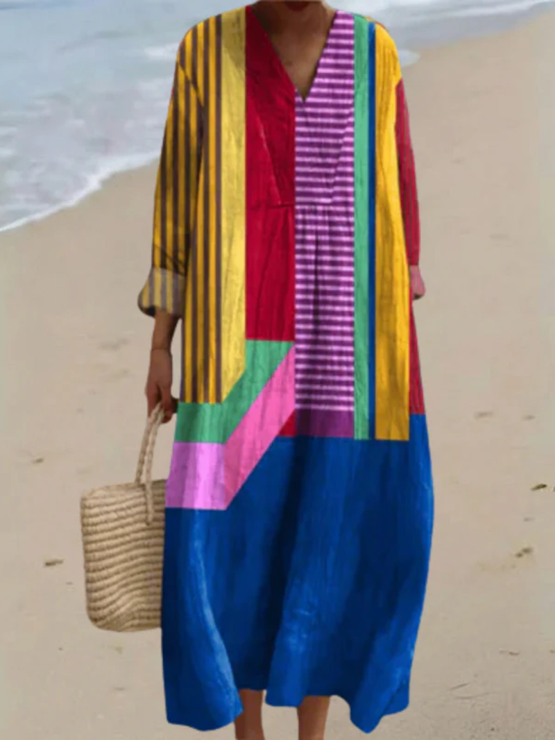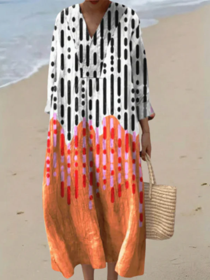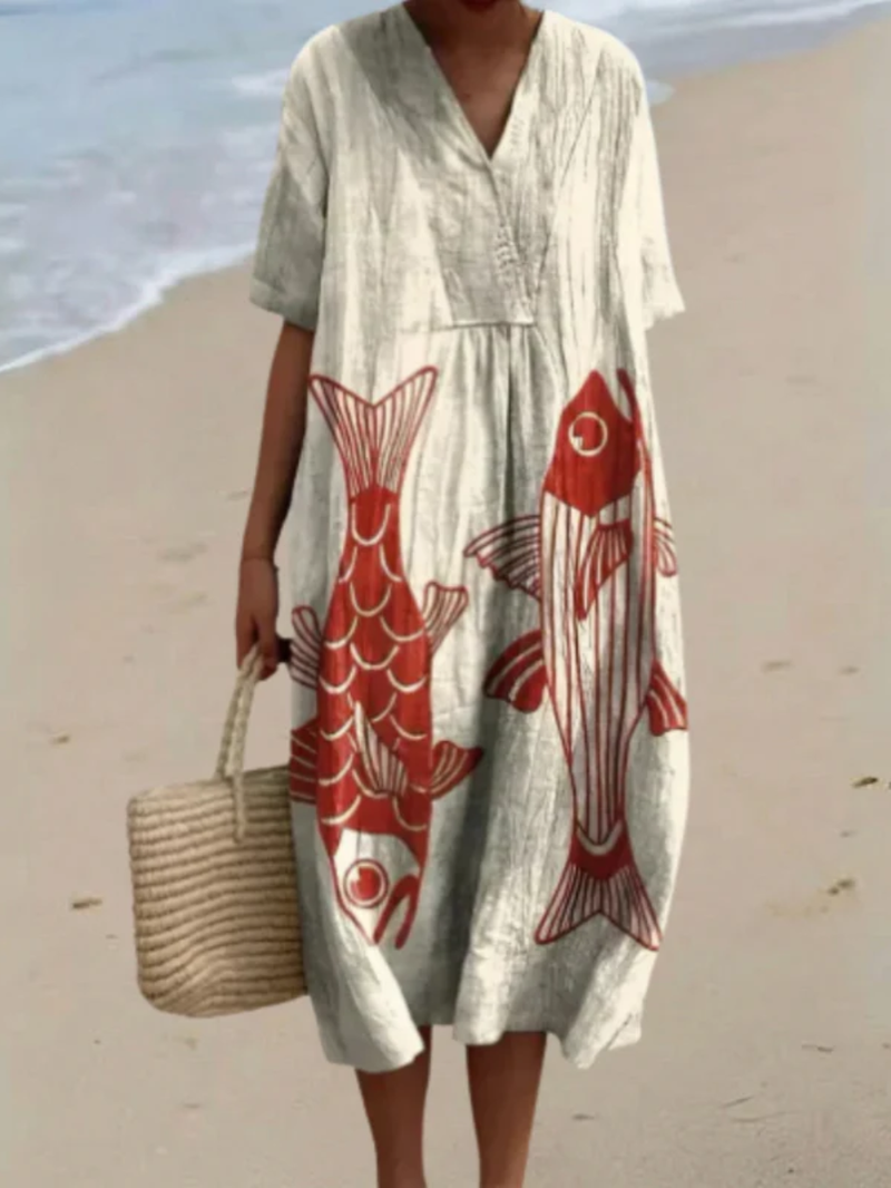 Women's Vintage Floral Art Print Flowy Casual Dress