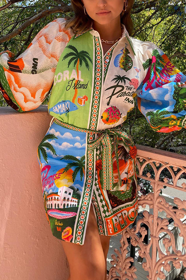This fitted shirtdress features a pointed collar, a mini hem, and elasticated balloon sleeves with elasticated cuffs. Finished with a self-tie belt to accentuate the waist, this mini dress can be dressed up or down for any summer occasion.